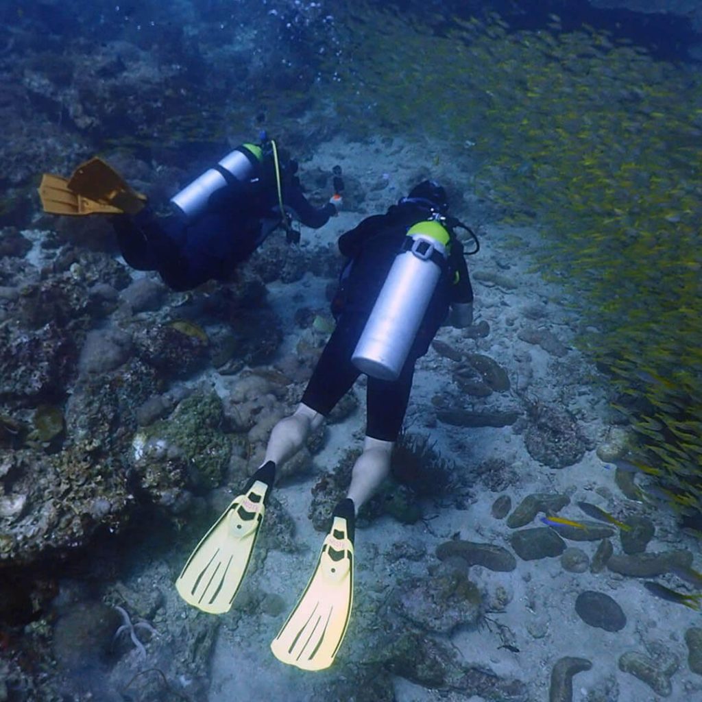 Kolmossaaren länsipuoli on kuuluisa valashai ja Manta-havainnoistaan, joten katse kannattaa aika-ajoin kääntää kohti syvää sinistä.